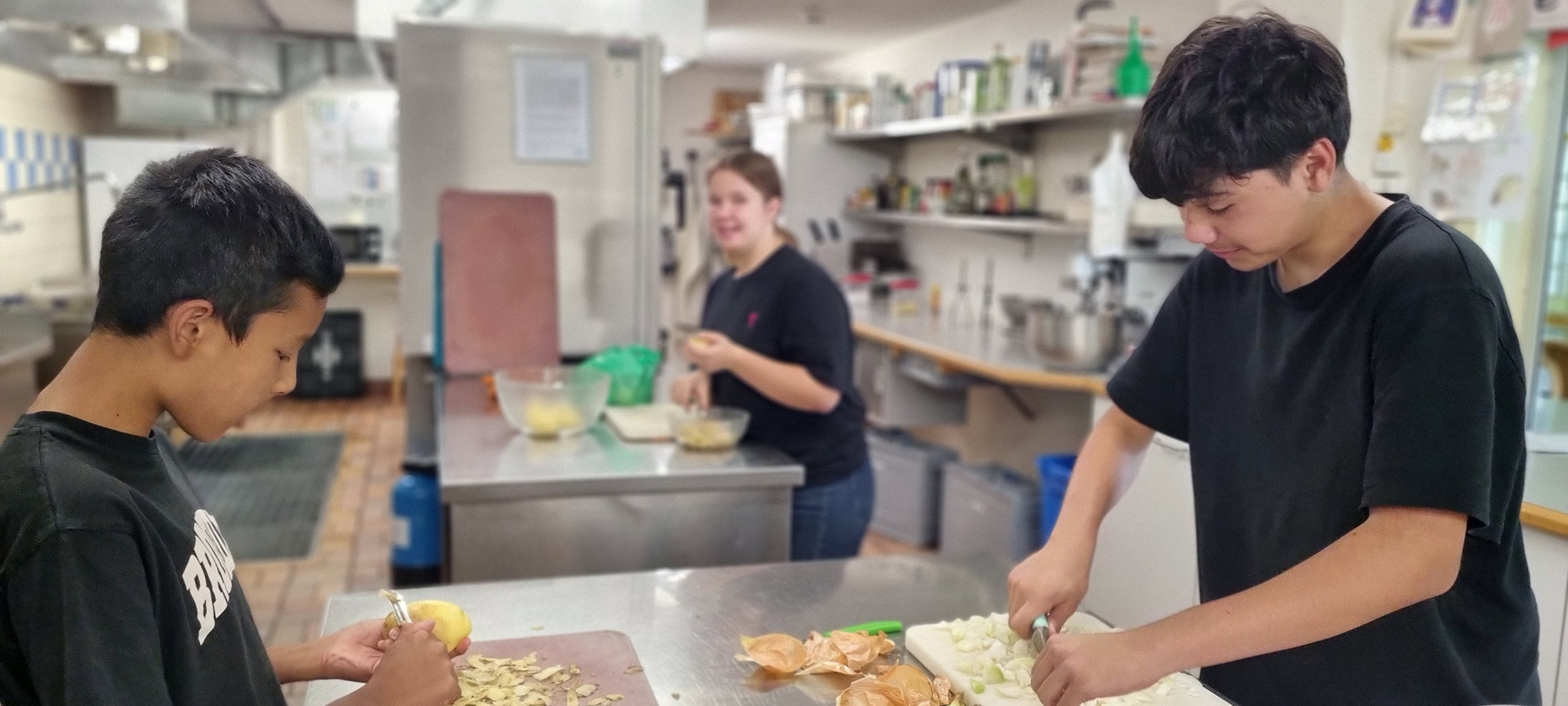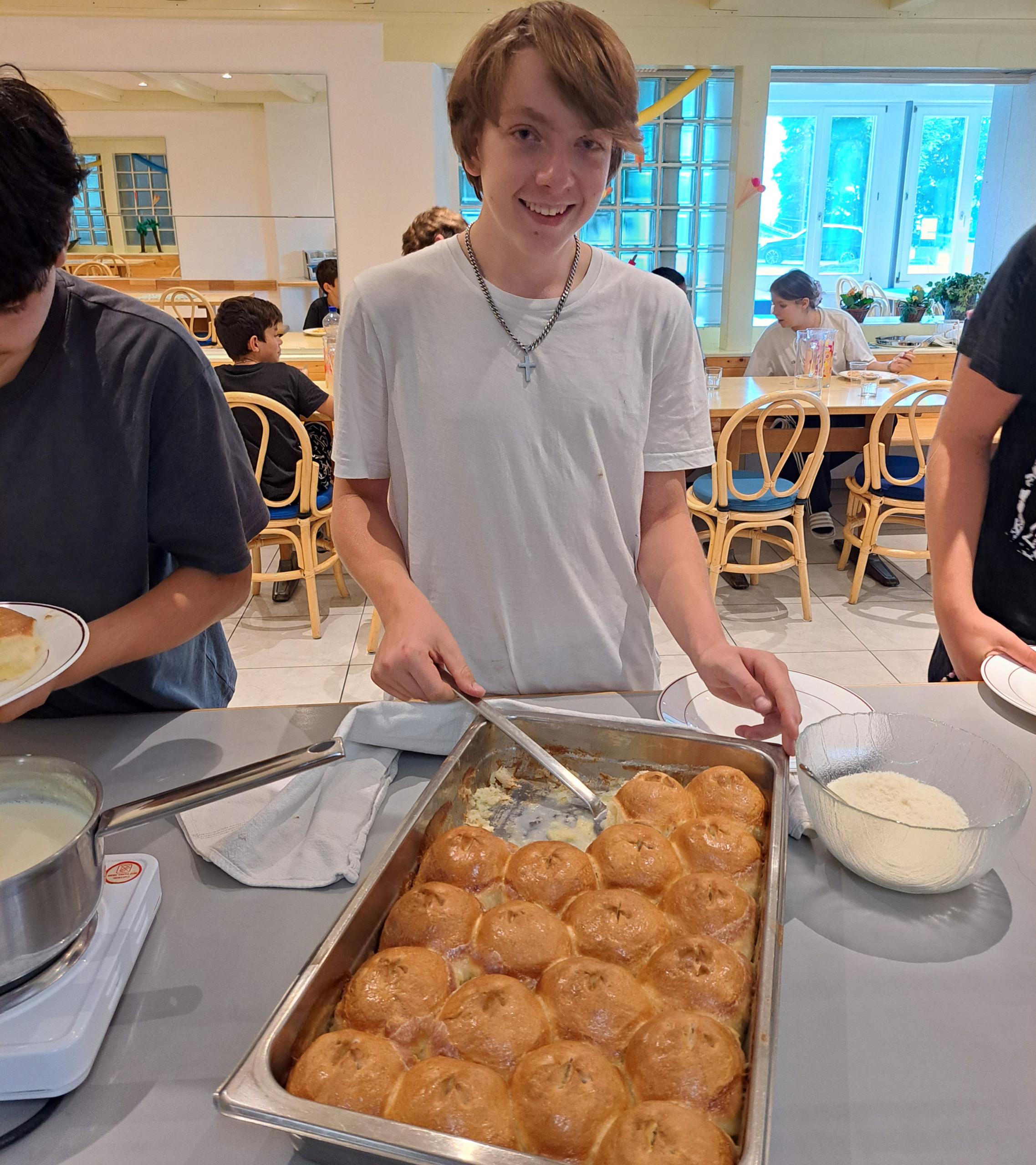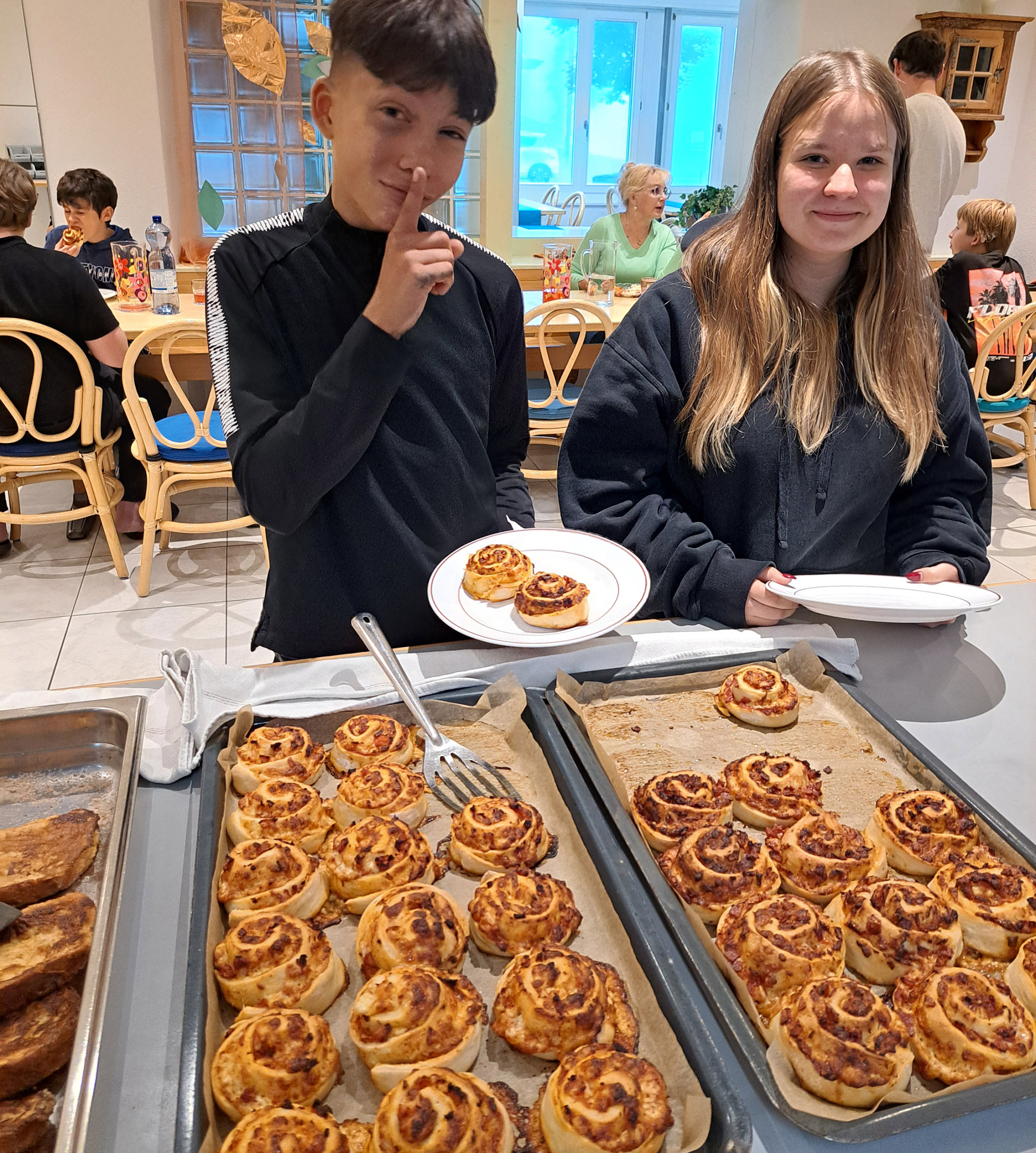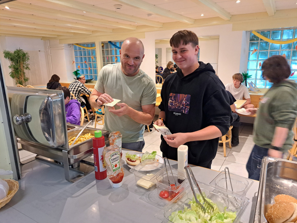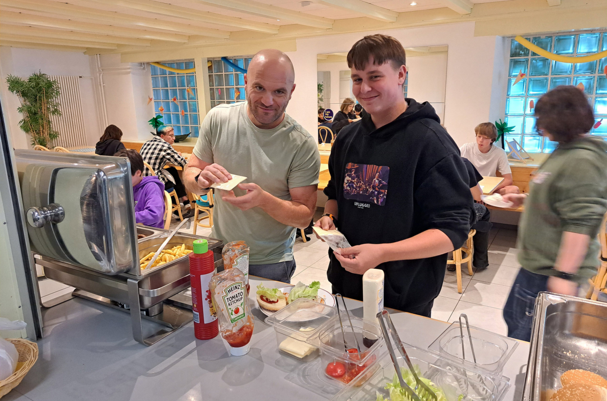 Wer Leistung erbringt, sich bemühen soll und sich auch noch viel bewegt, benötigt Energie. Dabei spielt die Ernährung eine absolut zentrale Rolle, auch und gerade in der Schule. Und die Erfahrung zeigt dabei: Der Mix machts und die Verfügbarkeit. Ab und zu mal Pommes und Burger gehören genauso dazu, wie z.B. einem Bami Goreng oder auch einmal Linsen, Pastetli und Erbsli oder auch saisonale Gerichte mit z.B. Wild und Rosenkohl im Herbst. Auch das Aktiv Kochen leistet dabei zuweilen z.B. mit einem «Shepards Pie» einen wichtigen Beitrag. Wenn es um Verfügbarkeit geht, so ist dabei der Dauerbrenner das grosszügige Salatbuffet. Und nicht zuletzt gehören auch die hausgemachten Desserts an dieser Stelle erwähnt. Damit sind die Essenzeiten dann nicht eine blosse Nahrungsaufnahme, sondern ein soziales Ritual, welches man für sich und mit anderen geniesst.