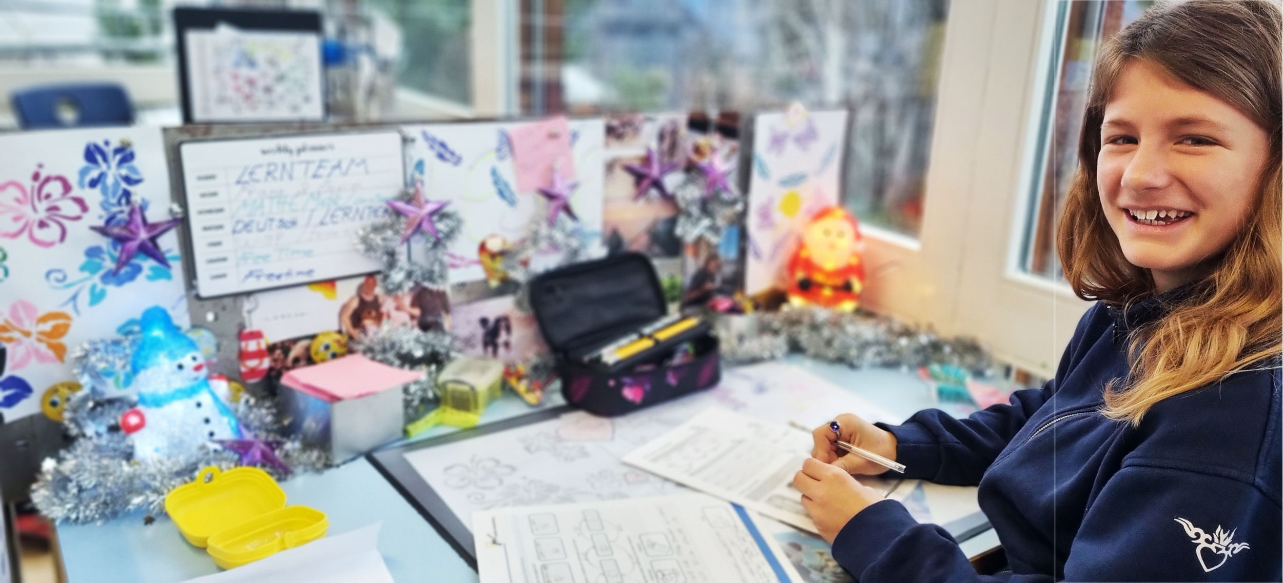 Wer Sorgfalt pflegen will, beginnt idealerweise bei sich selbst. So sind auch die Arbeitsplätze der Lernenden im Lernteam oft sorgfältig gestaltet und teilweise sogar der Saison entsprechen geschmückt und dekoriert. Zweifelsohne gibt es gerade in dem Bereich gewisse geschlechtliche Unterschiede festzustellen. Die Hauptsache jedoch ist, dass man sich auch bei der «Arbeit» in der Schule ein wenig zu Hause fühlt.