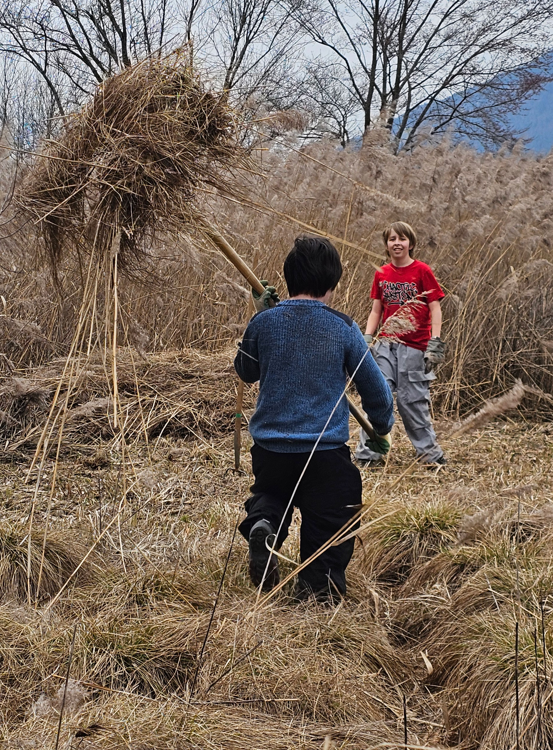Auch in diesem März waren die Lernenden im Rahmen der Go4it-Tage drei Tage aktiv. Zwei Gruppen engagierten sich an verschiedenen Orten in gemeinnütziger Arbeit. Auf dem Gelände der Tellspiele wurde das Gelände gereinigt und viel Laub gesammelt. Dort kann nun wieder mit den Proben für die Saison «Tell, unser Held» begonnen werden. Die zweite Gruppe half beim Uferschutz mit. Dort wurde Schwemmholz aus der Uferzone entfernt, damit das Schilf wachsen und den dort lebenden Tieren Schutz und Lebensraum bieten kann. Auch wurden Sträucher an der Grenze zu Naturschutzgebieten geschnitten.