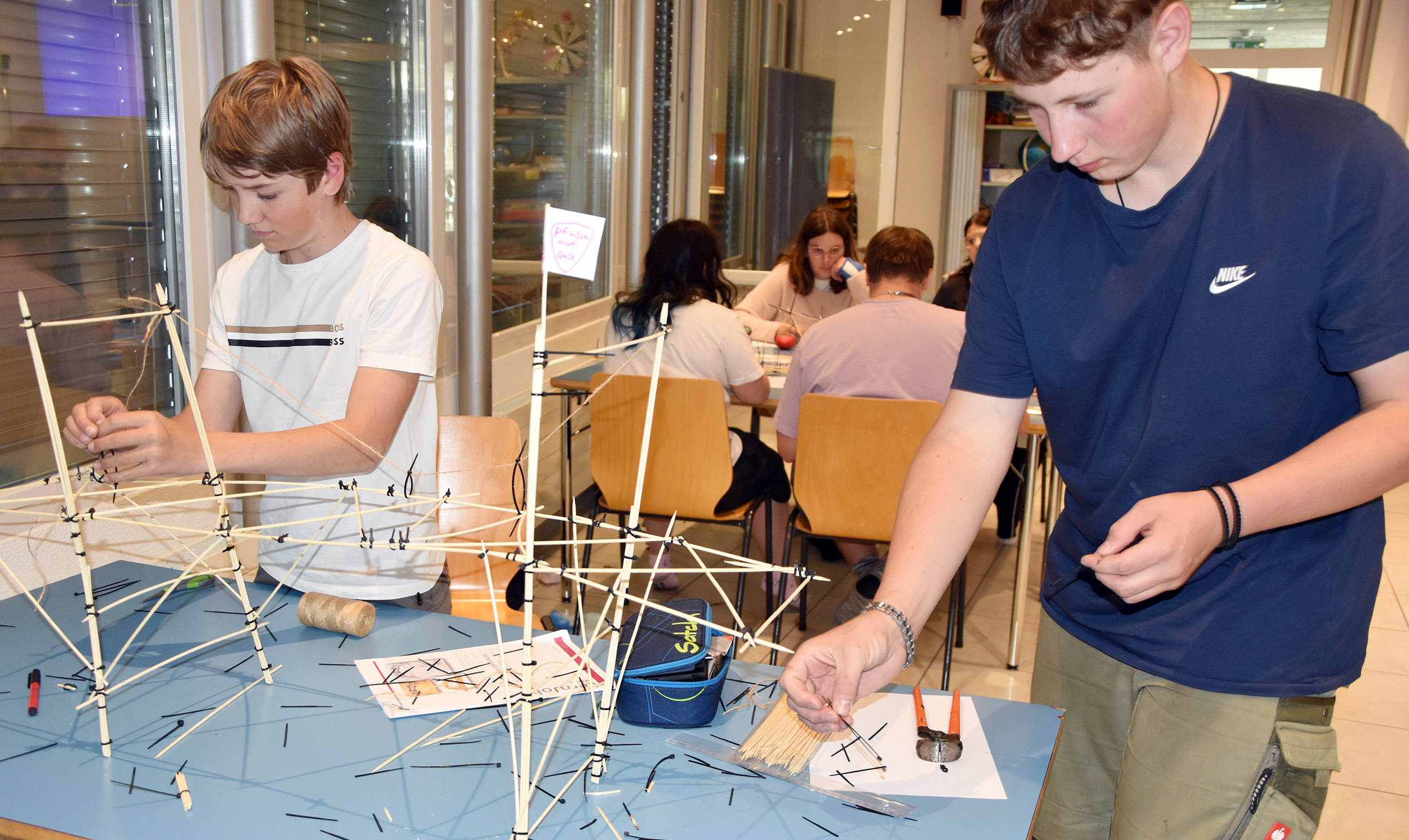 In der letzten Unit des Schuljahres drehte sich alles um Physik. Bei dieser Ausgabe ging es genauer gesagt um Konstruktionen: Welche physikalischen Eigenschaften mussten berücksichtigt werden, um eine Brücke oder einen Staudamm zu bauen? Mitunter vielleicht die komplexesten Bauwerke der Menschheit, da sie über einen langen Zeitraum genutzt werden und enormen Belastungen standhalten müssen. Eine Gruppe baute verschiedene Modelle von Brücken, um die Besonderheiten dieser Konstruktionen besser zu verstehen. Die andere Gruppe besuchte das Wasserkraftwerk in Mühleberg, um dieses spannende Bauwerk und dessen Nutzen live zu erleben.